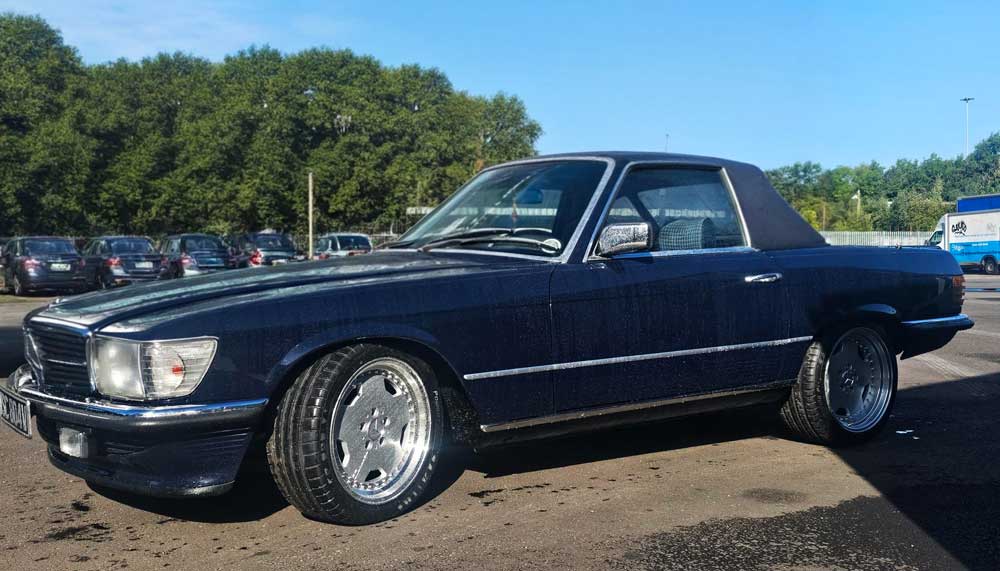 The deep-lustre Midnight Blue respray dramatically enhanced the vehicle’s presence, complemented by renewed chrome detailing and improved stance. Project Info 350sl